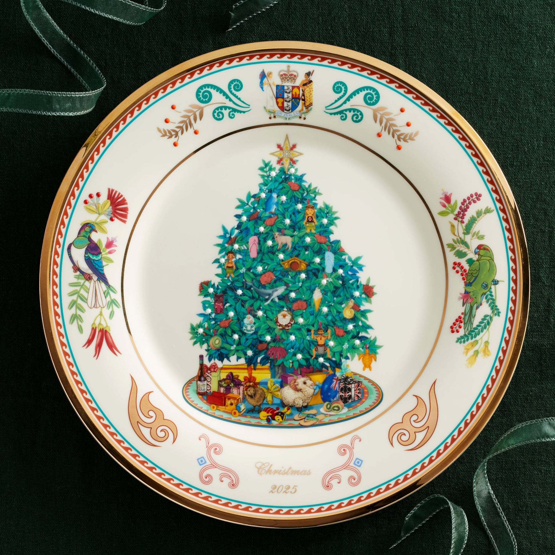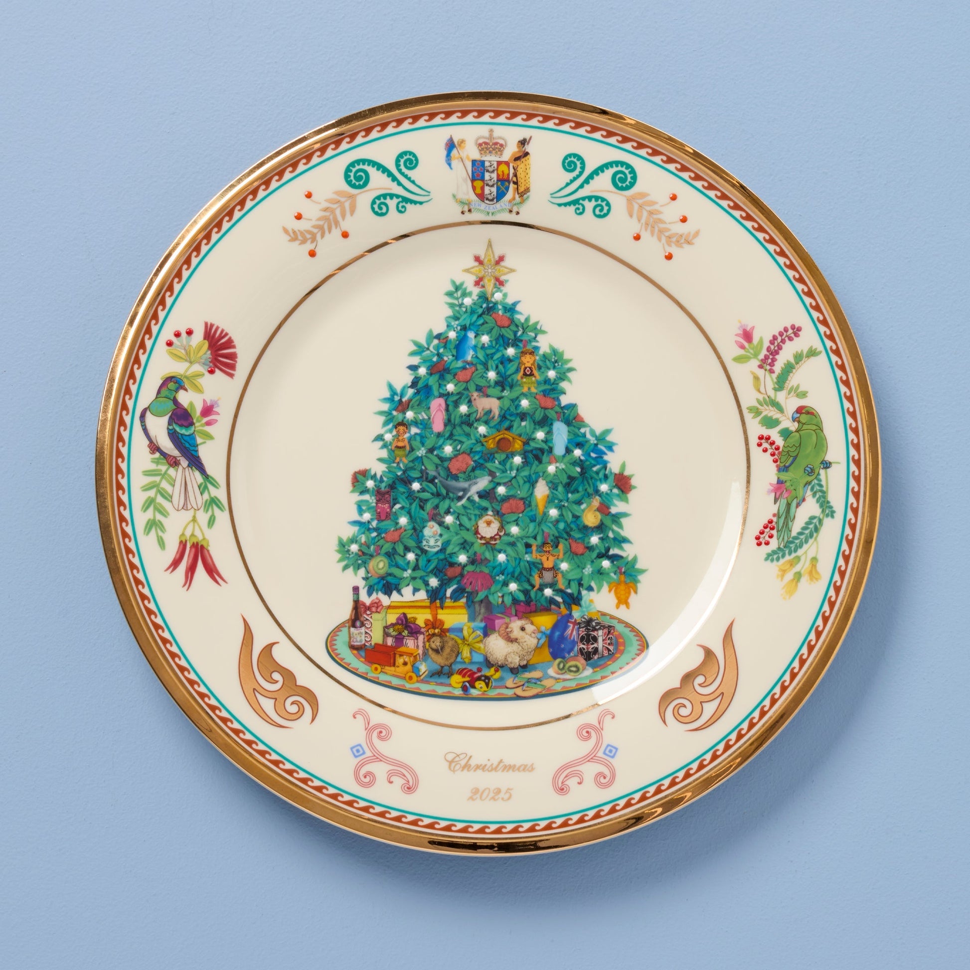 "Mere Kirihimete!" as the kiwis say. Influenced by island life and the culture of the native Māori people, Christmas in New Zealand is a season-mingling celebration centered around the country's Pohutukawa tree. Its spirit is elegantly and symbolically captured in our 2025 annual plate giving tribute to Christmas tree traditions from around the world.