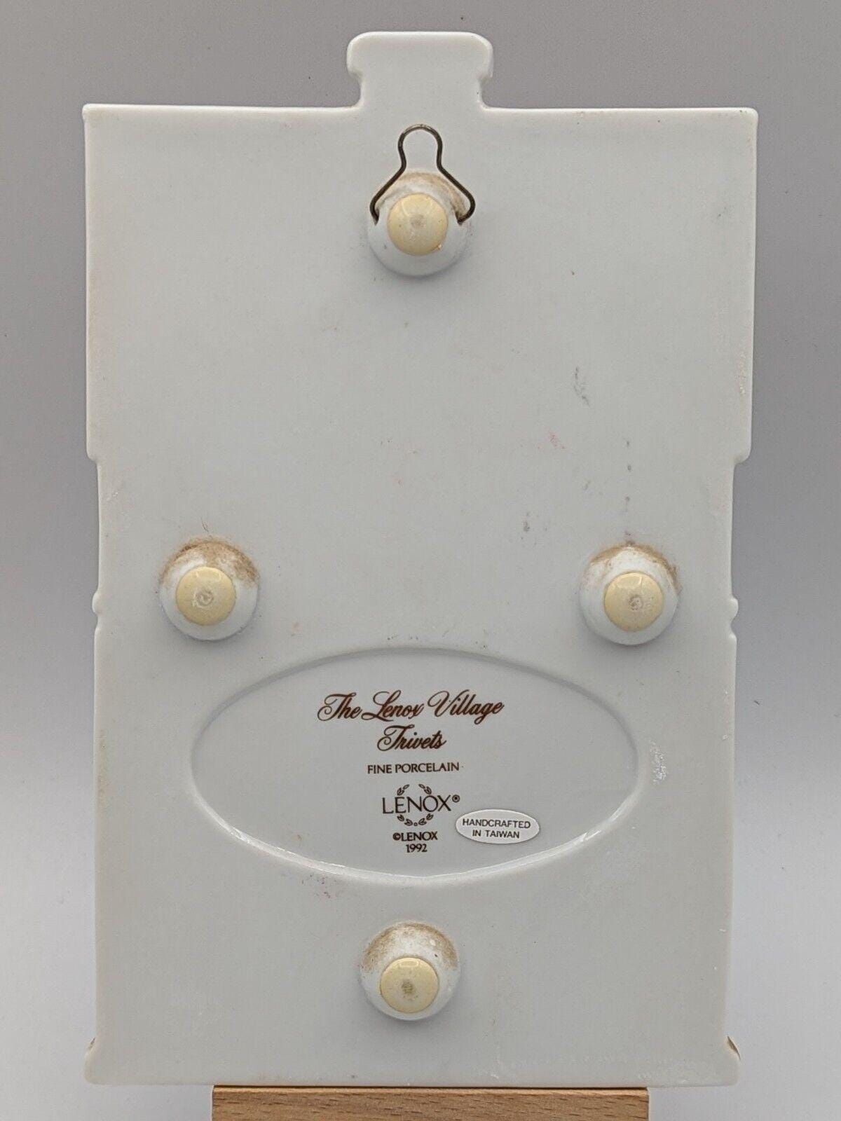 Vintage 1992 Lenox Spice Village fine porcelain trivets - set of 4 - Green Grocer, Confectionary, Café, & Country Store. In excellent condition. No chips, cracks or crazing. They all have little hooks where they can be hung. Handcrafted in Taiwan.