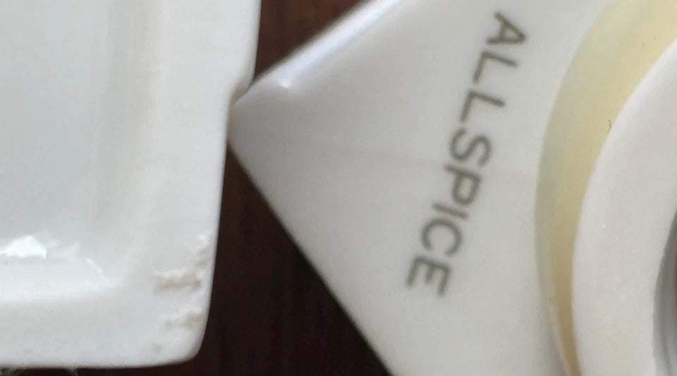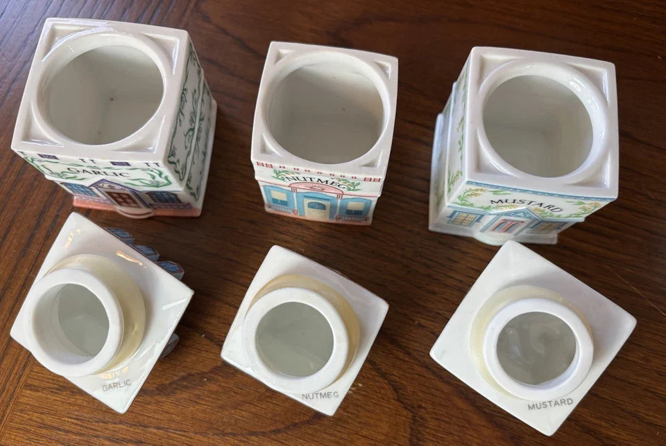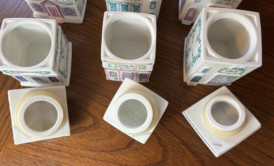 This is a full set of 24 Lenox Spice Village 1989 spice jars with original holding rack. The rack and jars have been displayed on a wall for years and only the Celery jar was actually used for spice.