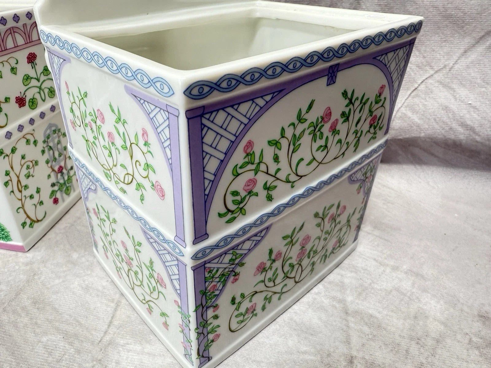 LENOX SPICE VILLAGE Planters Set 2 Pink & Blue 1993 Vintage w/ COA Box Porcelain