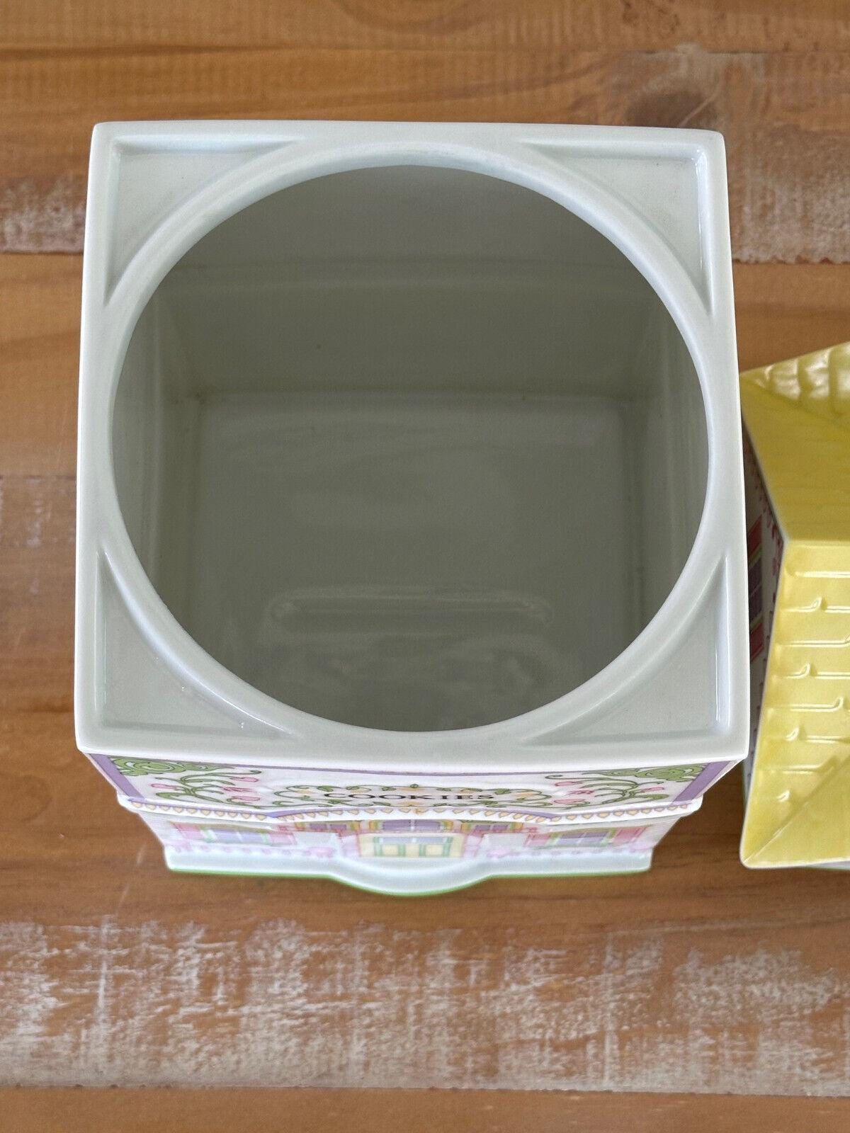 Vintage Lenox Village Cookie Cottage Jar Canister 1991 Yellow Floral Porcelain